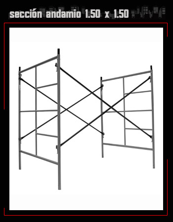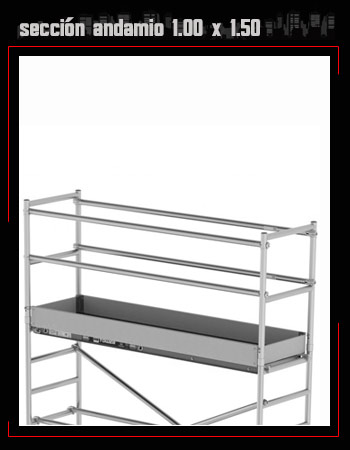 Equipo metálico tubular para trabajar en altura. Cada sección sube 1,50 mts. Y ocupa un área en la base de 1,00 mts. de ancho hasta 2,50 mts. de largo.