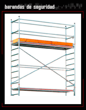 Equipo metálico tubular para trabajar en altura. Cada sección sube 1,50 mts. Y ocupa un área en la base de 1,50 mts. de ancho hasta 260 mts. de largo.